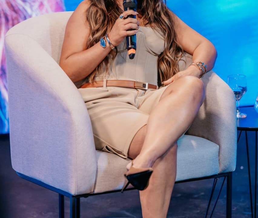 Criadora de conteúdo sobe ao palco com look conceitual para anunciar os vencedores da categoria A influenciadora e…