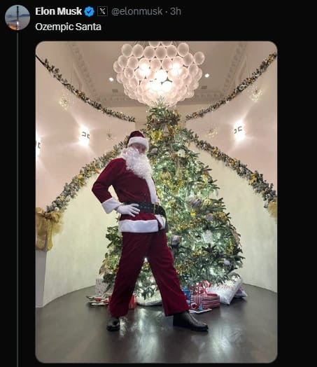 No final de 2025, o Natal ganhou um personagem que simboliza a era da transformação instantânea. Elon Musk, a figura que transita entre o gênio e o polêmico, apareceu nas redes sociais com uma silhueta visivelmente esculpida. “Ozempic Santa”, brincou. A piada, embora técnicamente (ele usava Mounjaro), serviu de moldura para um fenômeno que deixou de ser um segredo de consultório para se tornar a nova estética do mainstream.