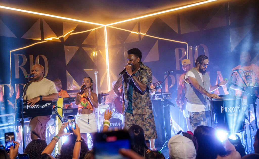 A segunda-feira (16) do Carnaval 2026 teve clima de nostalgia no Camarote Rio Praia, na Marquês de Sapucaí. O grupo Pixote comandou o palco durante os desfiles das escolas de samba, reunindo sucessos que atravessam gerações.